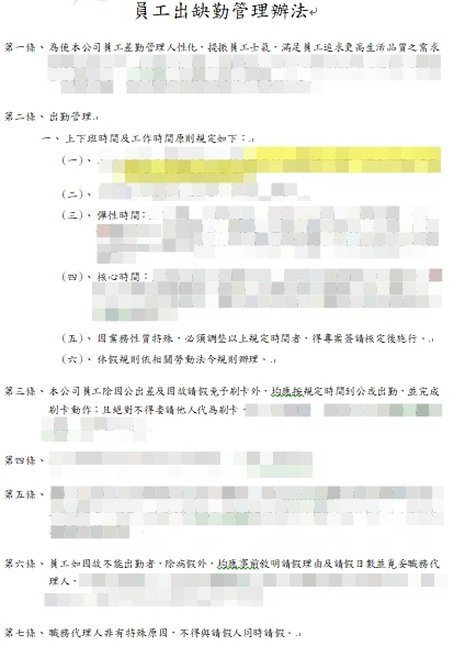 員工出缺勤管理辦法