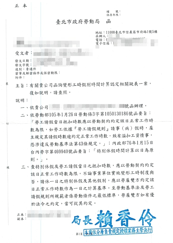 協助發函至勞工局詢問相關疑義-回函
